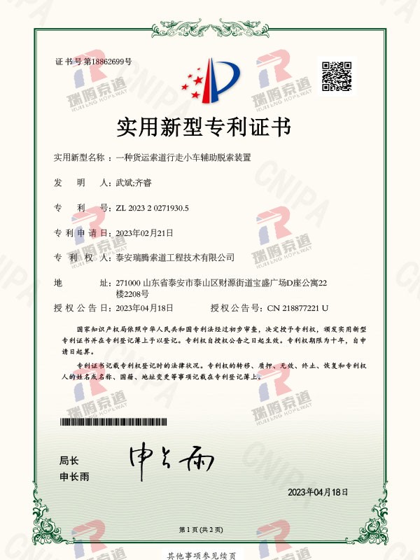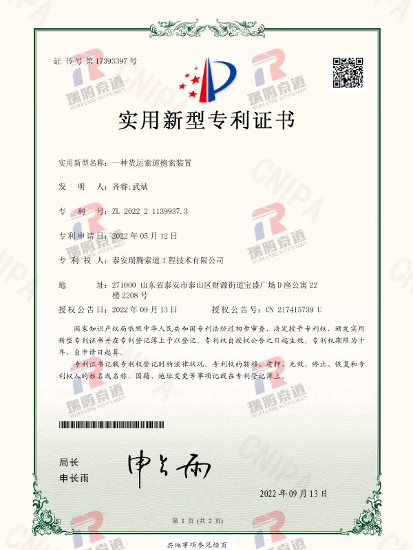 一种货运索道钢丝绳防坠安全装置