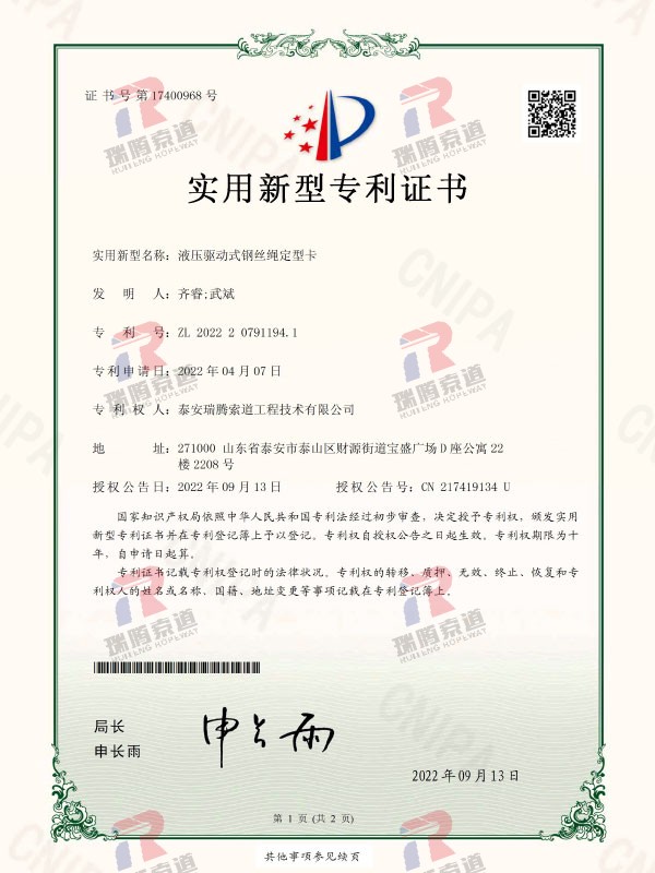 液压驱动式钢丝绳定型卡